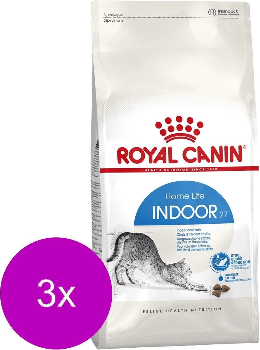 1. Indoor 27 voorkomt dat het gewicht van je kat toeneemt. Binnenkatten bewegen niet zo veel en verbruiken daardoor ook minder calorieën. Als je binnenkat te veel eet of verkeerde voeding heeft, is de kans groot dat hij te dik wordt. De ingrediënten van Royal Canin Indoor 27 zijn perfect afgestemd op de lagere energiebehoeften van binnenkatten.