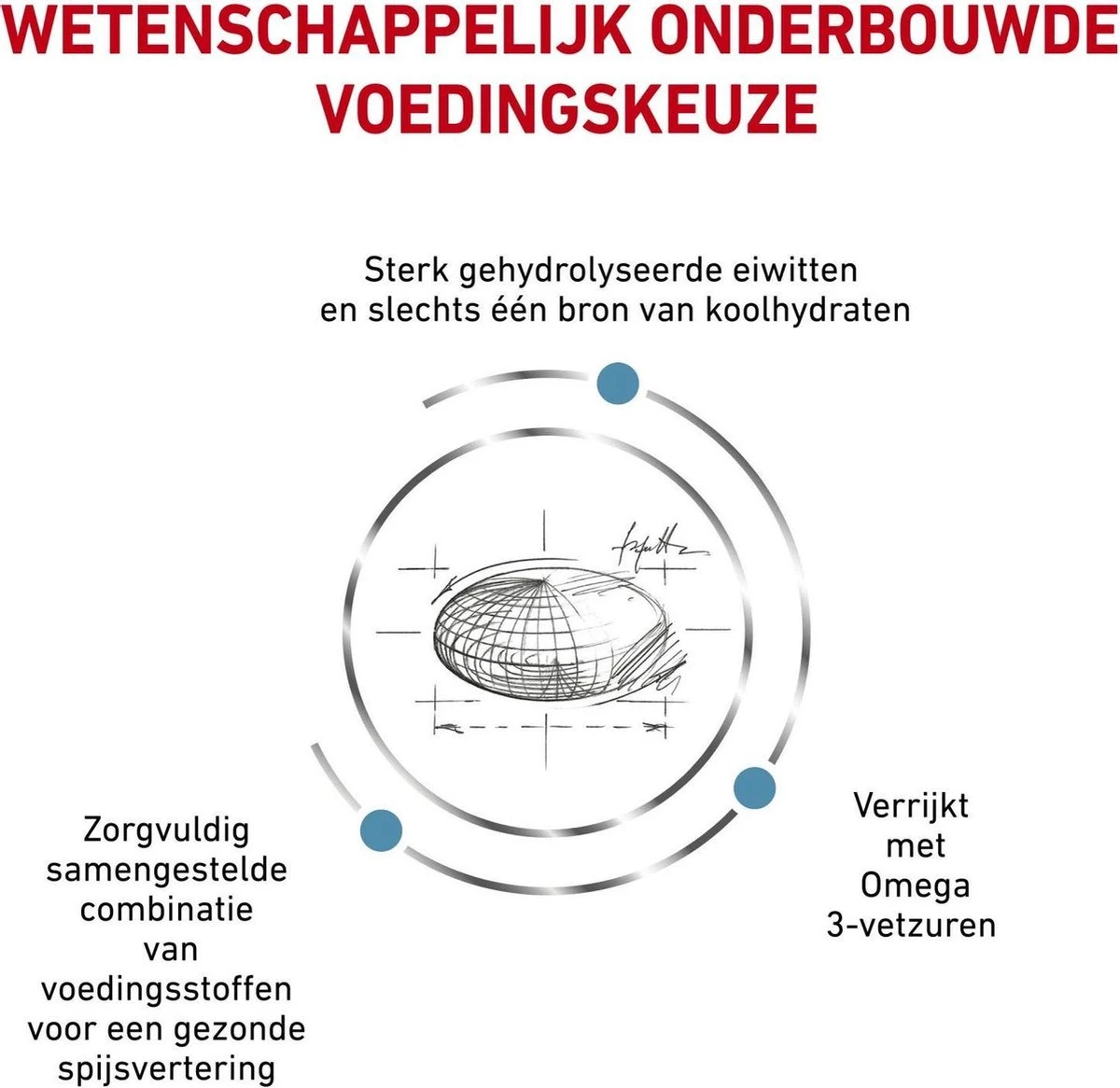 - Bevat een combinatie van zeer goed verteerbare eiwitten, prebiotica, bietenpulp, rijst en visolie voor een optimale ondersteuning van de spijsvertering.