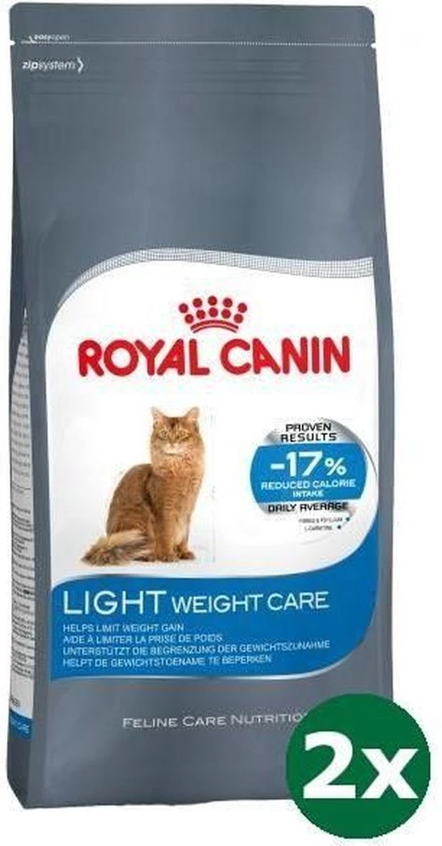 Royal Canin light 400GR1 op de 4 katten heeft last van overgewicht.Een kat met weinig overgewicht heeft de neiging om dit overgewicht te behouden of zelfs meer overgewicht op te bouwen. Overgewicht is niet onontkoombaar. Om een ideaal lichaamsgewicht te bereiken dient de dagelijkse voedingsinname beperkt te worden zonder dat de kat iets tekort komt:- Door een voeding met een beperkt energiegehalte; – Door het lichaam te stimuleren om vetten te verbranden.Verlaagde calorie inname en toch een verzadigd gevoel. – Een hoog gehalte aan vezels en psyllium geeft de kat een verzadigd gevoel, terwijl haar calorie-inname aanzienlijk lager is.- Een hoog eiwitgehalte (40%) ondersteunt het behoud van de spiermassa, L-carnitine helpt het verbruik van vetreserves te stimuleren.- RESULTAAT Calorie-inname is 17% lager terwijl de kat toch een verzadigd gevoel heef