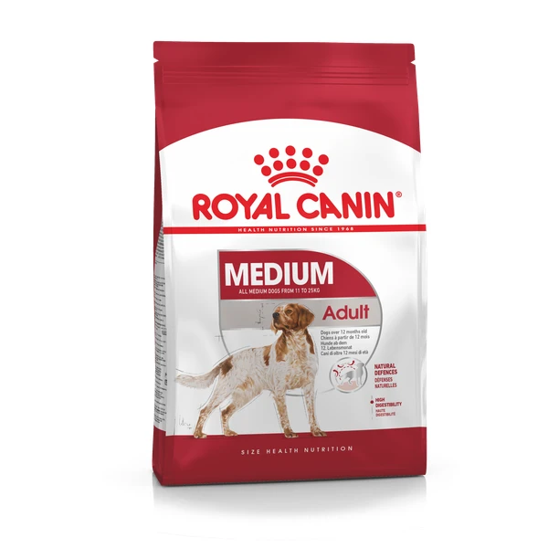 Royal Canin Medium Adult is verkrijgbaar in 4 kg, 10 kg en 15 kg.
