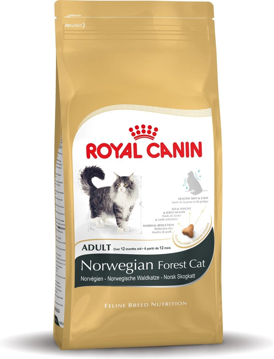 Je Noorse Boskat is gezond, toch? Of zouden zijn gewrichten nog soepeler kunnen bewegen? Haar robuuste postuur en hoge lichaamsgewicht kunnen de botten en gewrichten nogal zwaar belasten. Norwegian Forest Cat Adult van ROYAL CANIN® helpt je kat haar goede gewicht te behouden en daarnaast haar unieke vacht gezond te houden.