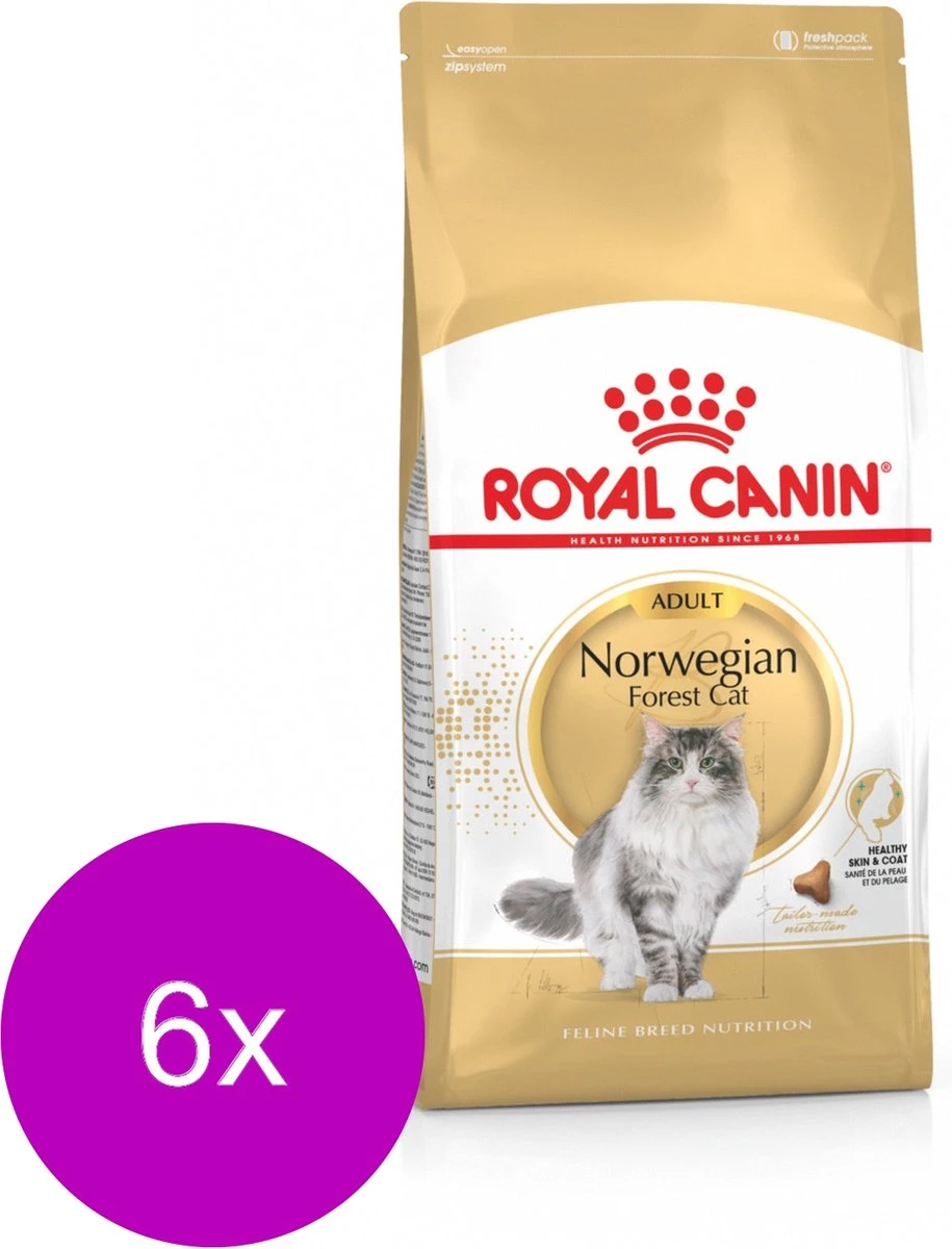 Royal Canin Norwegian Forest Cat Adult is verkrijgbaar in 2 kg en 10 kg.