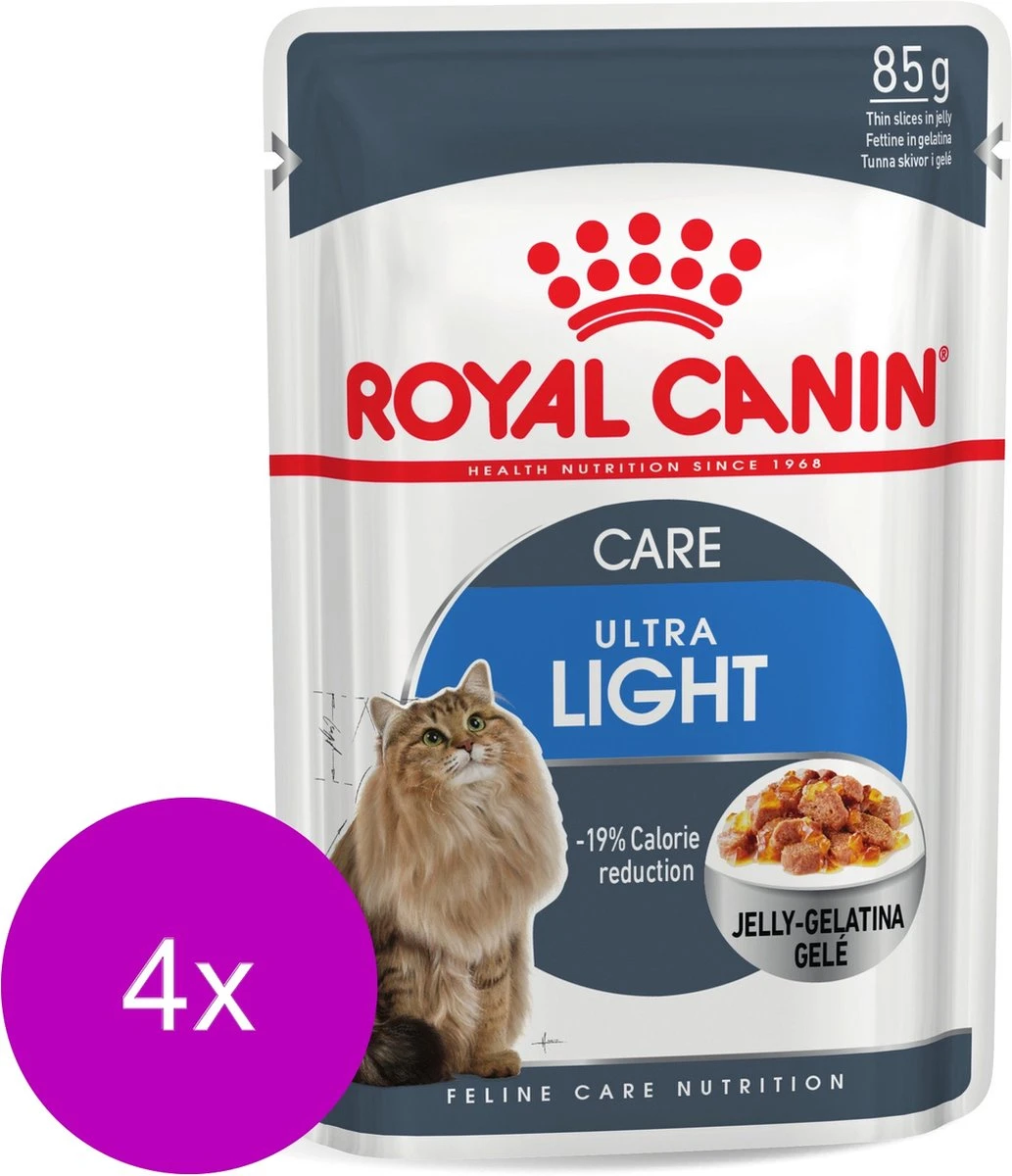 Royal Canin Ultra Light in Jelly bevat 12 pouches van 85 gram.