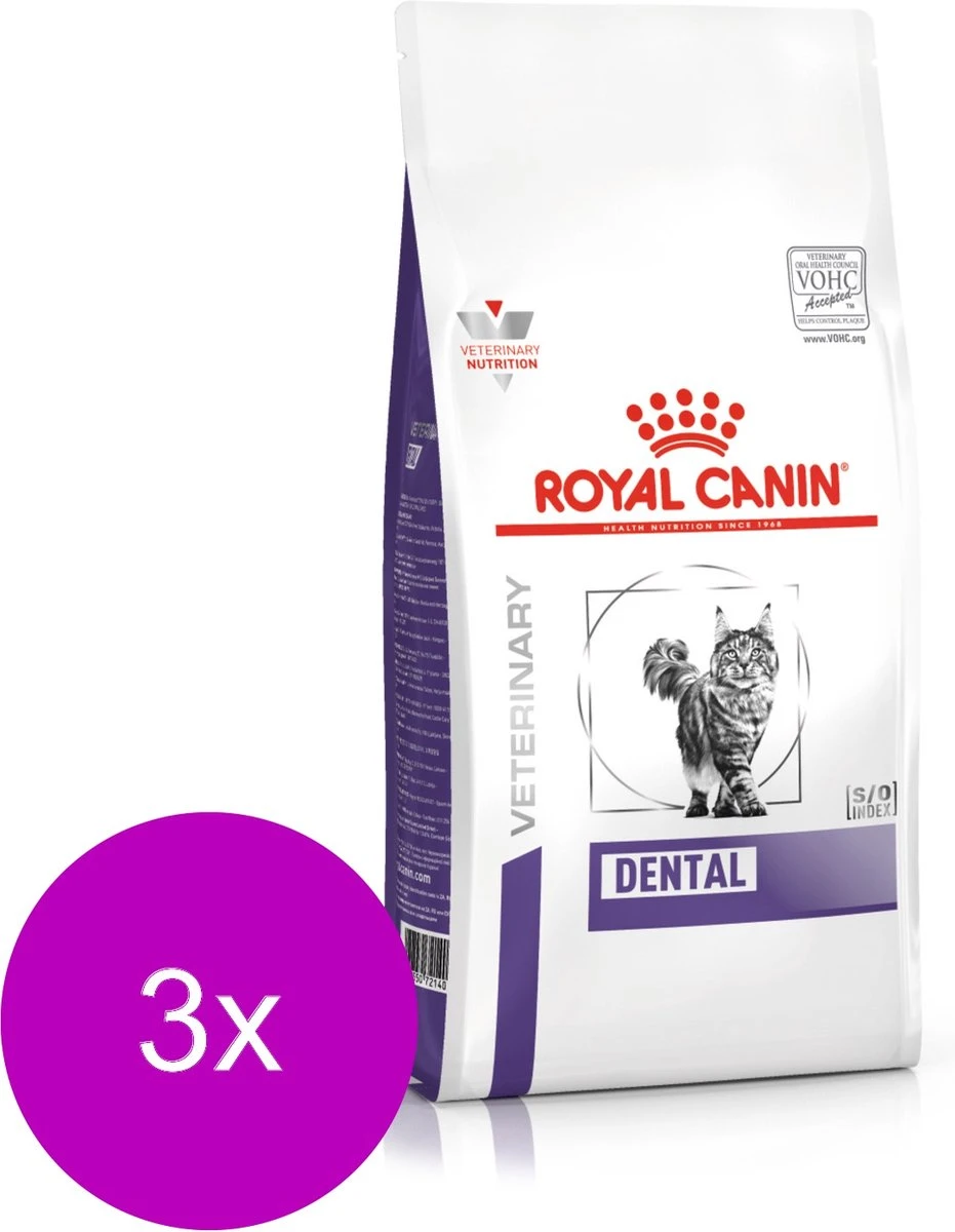 Royal Canin Veterinary Diet Dental is te verkrijgen 1,5 kg en 3 kg zak.